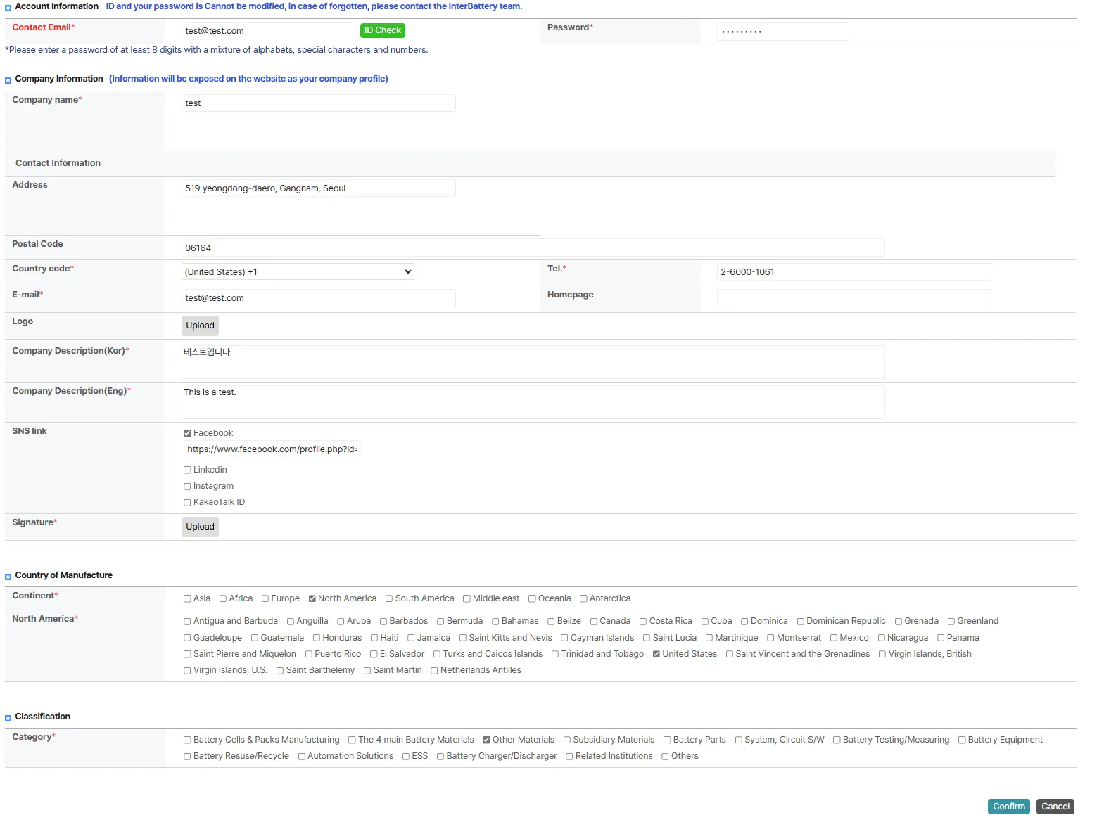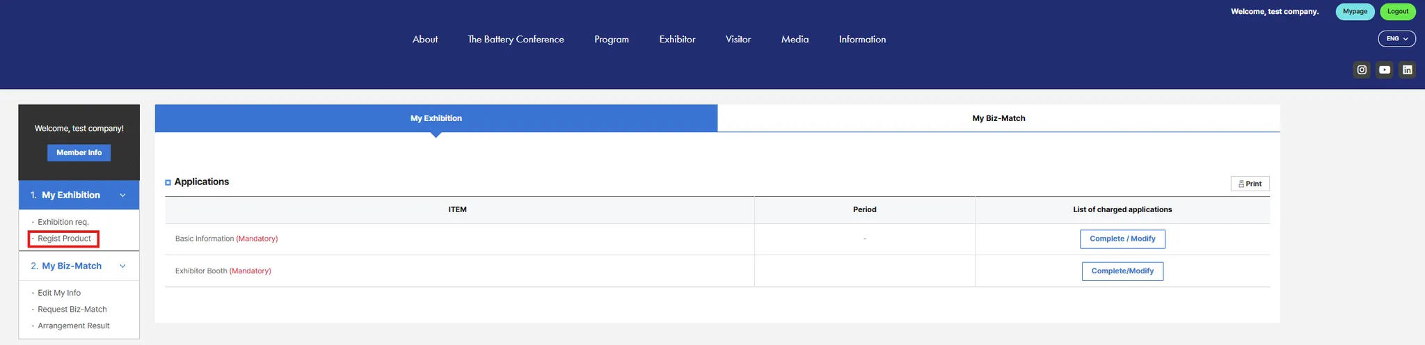 InterBattery team do not print company directory, instead we provide individual company introduction page on the website. If a company profile is not registered, the company will not appear in search results on the website, so please make sure to register your profile. After the profile is completed and the approval process by the secretariat is finalized, it will be uploaded to the exhibitor list page on the website and the mobile app.