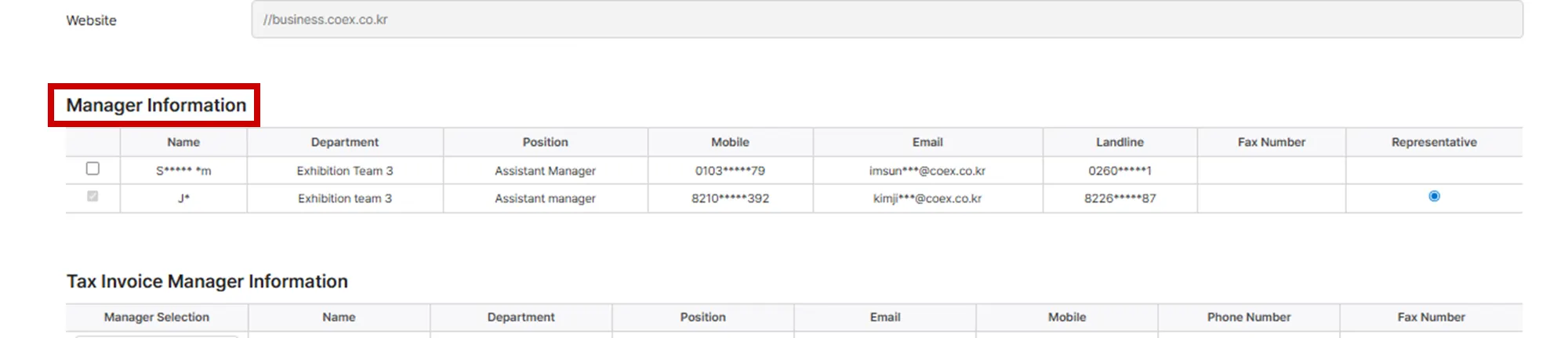 Select the contact person for this application under [Manager Information].