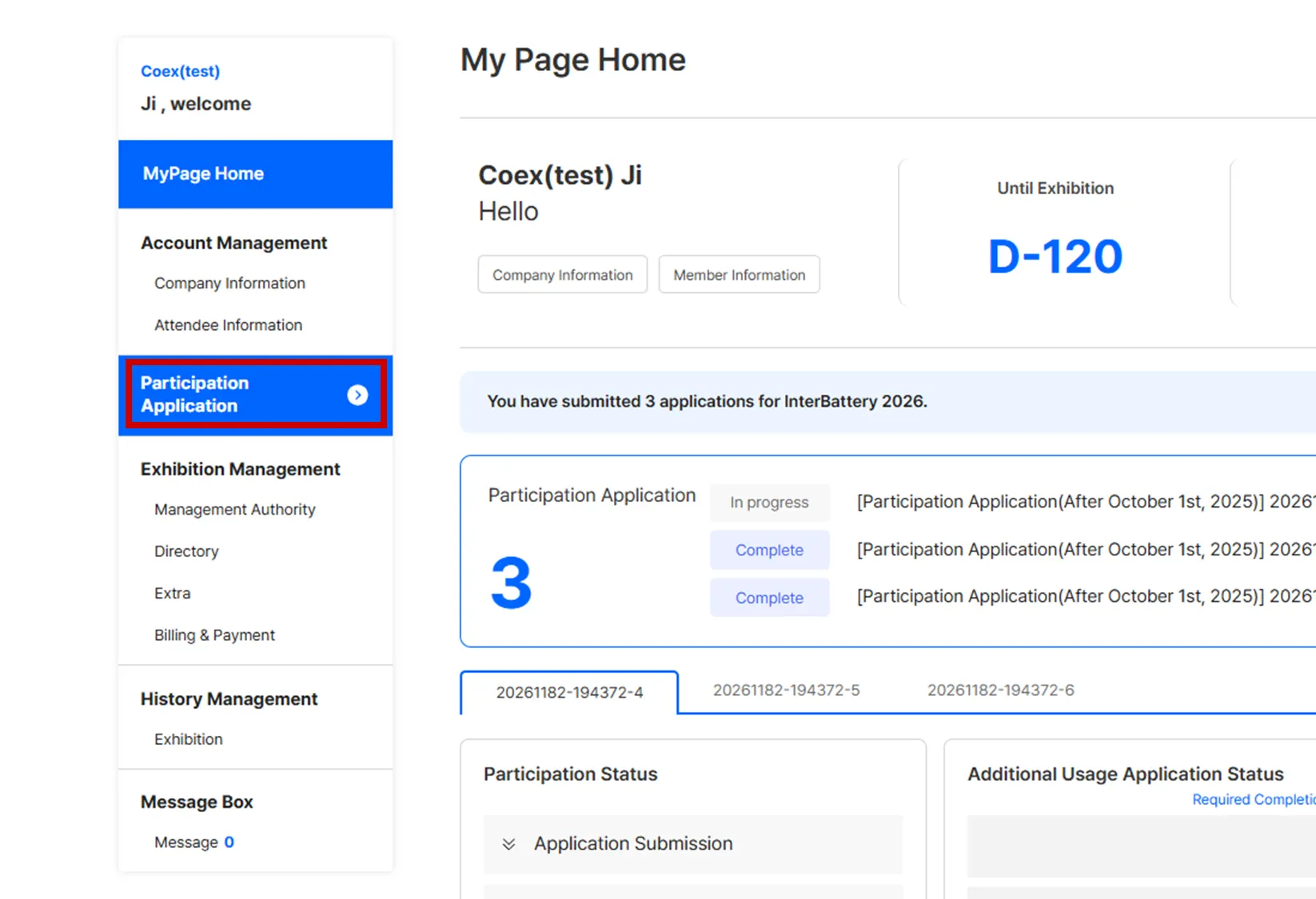 In MyPage, click [Participation Application]
