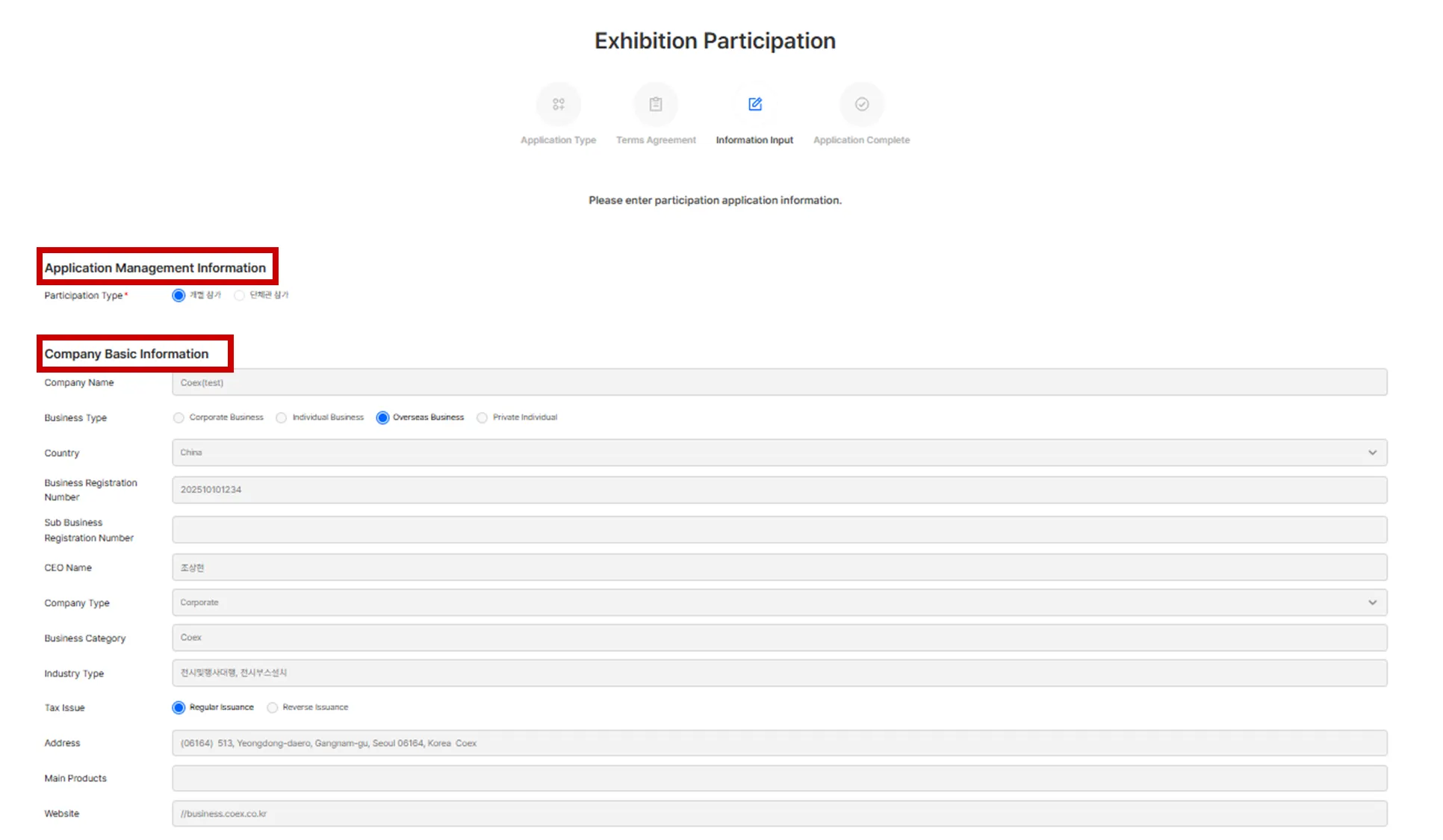 Confirm [Participation Type] and [Company Basic Information].