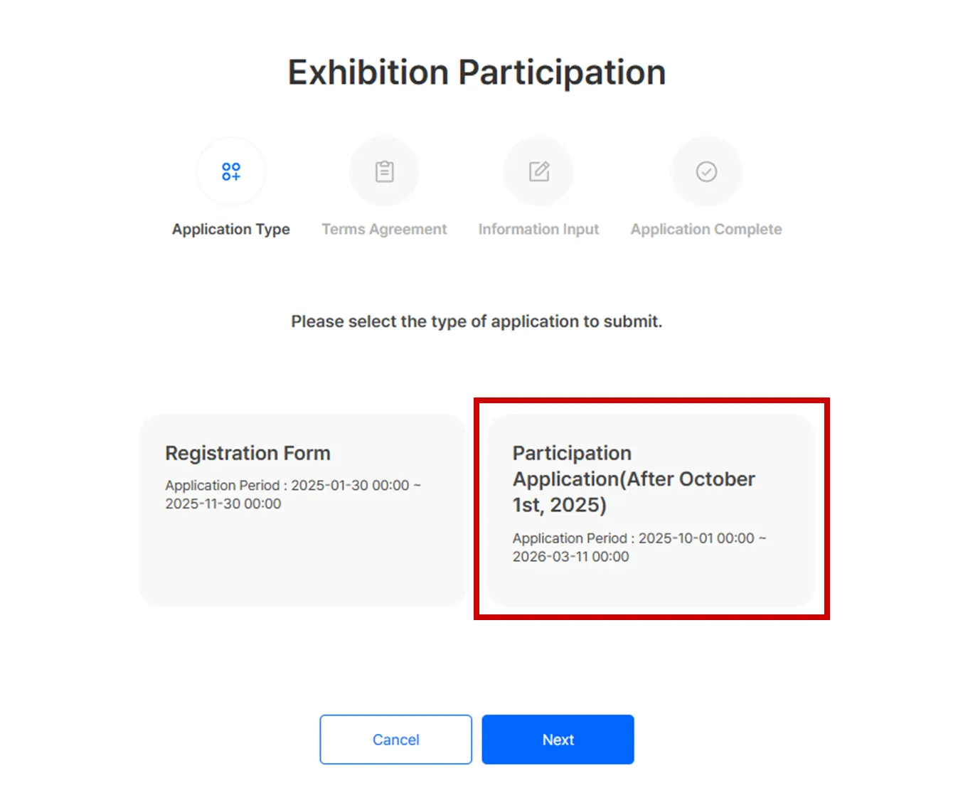 Select [Participation Application(After October 1st, 2025)] and click [Next].