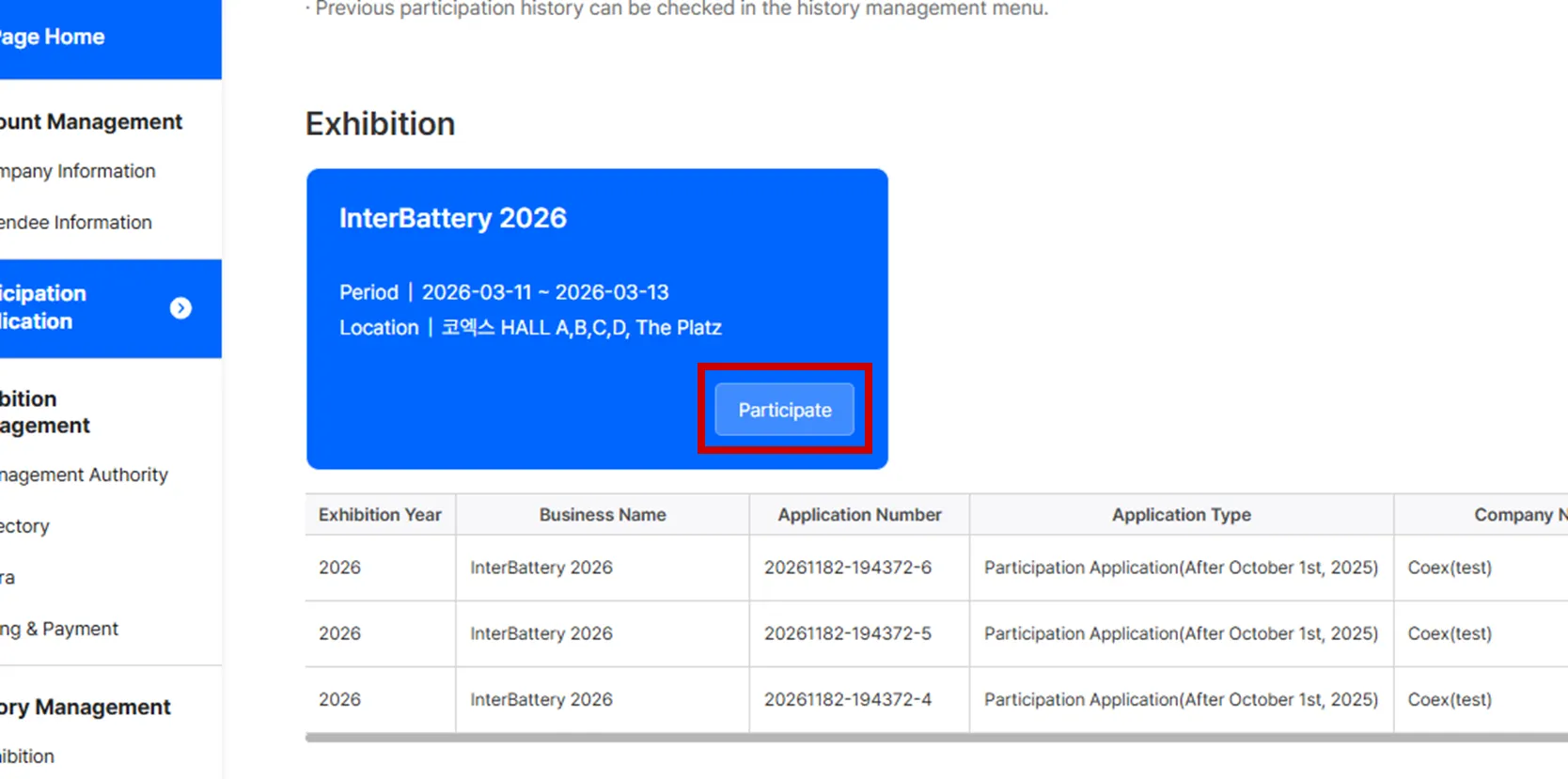 Click the [Participate] button for InterBattery 2026.